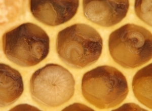 Bienenlarve häutet sich vier Mal während der Wachstumsphase. Das