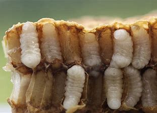 Am 3. oder 4. Tag schlüpft die Larve aus dem Ei. Ab jetzt wird die Larve von den Ammenbienen mit Lavenfuttersaft aus Drüsen an deren Kopf gefüttert.